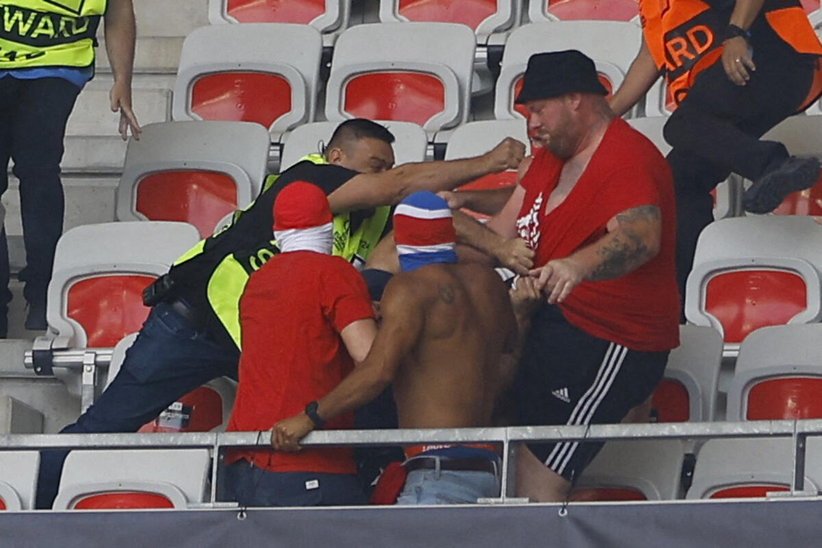 Utakmica prvog kola grupe D Lige konferencije između Nice i Kelna je kasnila oko sat zbog haosa na tribinama i tuče navijača dva tima.
