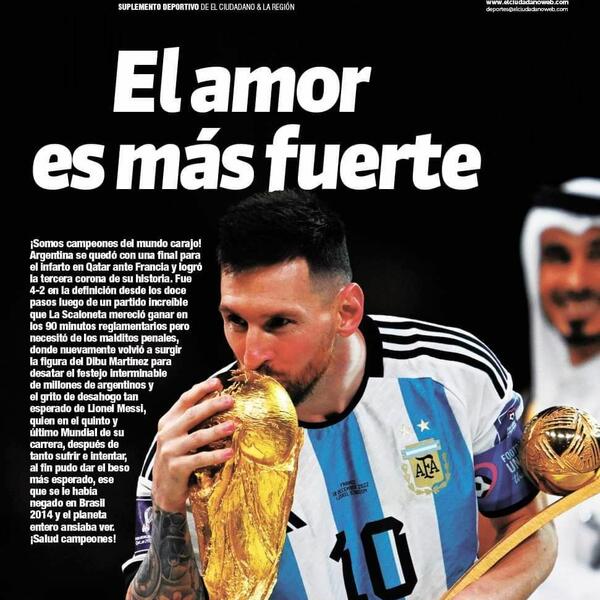 Argentinski „Diario Ćako” je sa fotografijom Mesija napisao „Svijet pod tvojim nogama”.