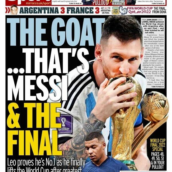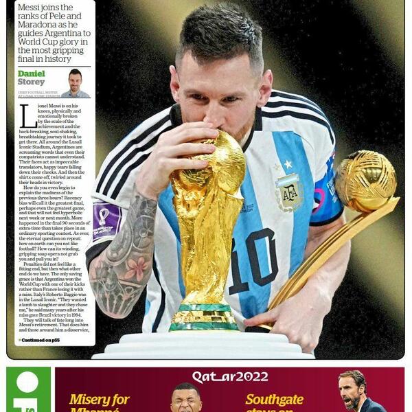 Englezi su, kao i obično, držali svoju stranu. „San” je uz fotografiju Mesija stavio naslov „U ruci boga”, ali je u nadnaslovu napisao „Najbolje finale Svjetskog prvenstva... od 1966”, aludirajući na kontroverznu pobjedu Engleske nad Zapadnom Njemačkom (4:2) nakon produžetaka.