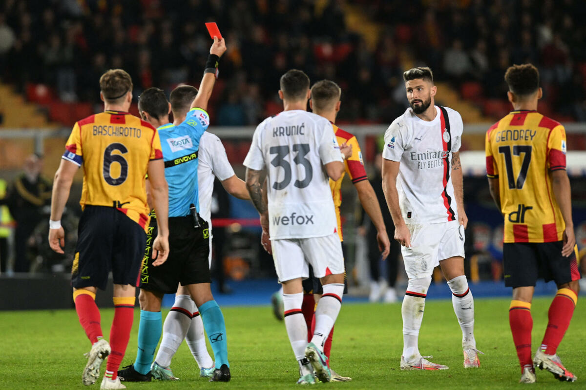 Napadač Milana Olivije Žiru suspendovan je na dva meča nakon crvenog kartona koji je dobio u prvenstvenom duelu sa Lećeom, saopštila je Italijanska fudbalska liga.