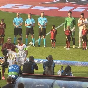 50. minut: Mnogo bolja Crna Gora u nastavku - Brnović je oduzeo loptu Fermerenu, ona je stigla do Jovetića, ali je vezista Atletika faulirao našeg kapitena na 20 metara od gola.