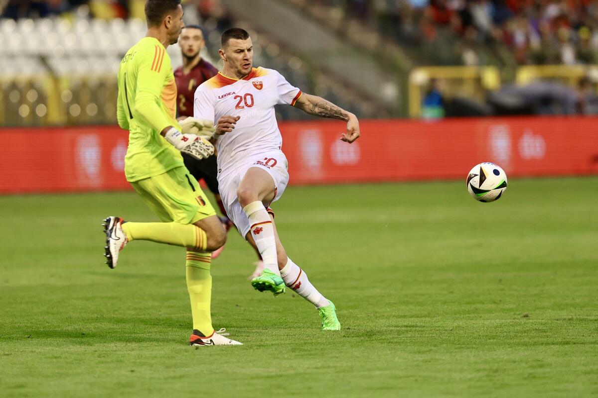 60. minut: Kakva šansa za Crnu Goru - Milutin Osmajić je "progutao" Aksela Vicela išao je sam ka golu Belgije, ali je njegiv dobar šut malo iskosa zaustavio Kastels.
