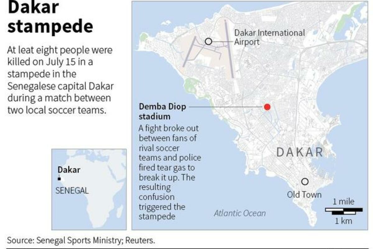 Osam osoba je poginulo, a oko 50 povrijeđeno u stampedu na stadionu "Demba Diop" u Dakaru, nakon finalne utakmice fudbalskog prvenstva u Senegalu.