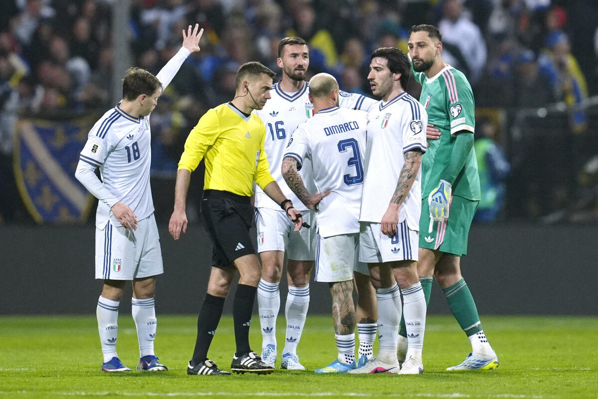 Italijanski fudbal je doživio krah - nakon što su propustili Mundijal 2018. i 2022. godine "azuri" ni ovog ljeta neće biti učesnici planetarne smotre. Prvi put u istoriji jedna reprezentacija, koja je osvajala titulu neće učestvovati na Svjetskom prvenstvu tri puta zaredom. Poslije Švedske 2018. godine, te Sjeverne Makedonije 2022, Italijanima se sinoć na putu do Mundijala ispriječila Bosna i Hercegovina, koja je u Zenici slavila nakon penala (4:1, poslije 120 minuta bilo je 1:1).