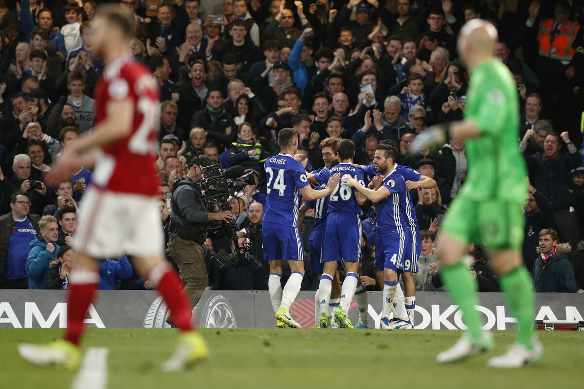Večeras je vjerovatno stavljena tačka na borbu za titulu u Premijer ligi - Čelsi je odradio Midlsbro (3:0), pobjegao Totenhemu na sedam bodova i potreban mu je samo još trijumf da trofejom kruniše sjajnu sezonu.