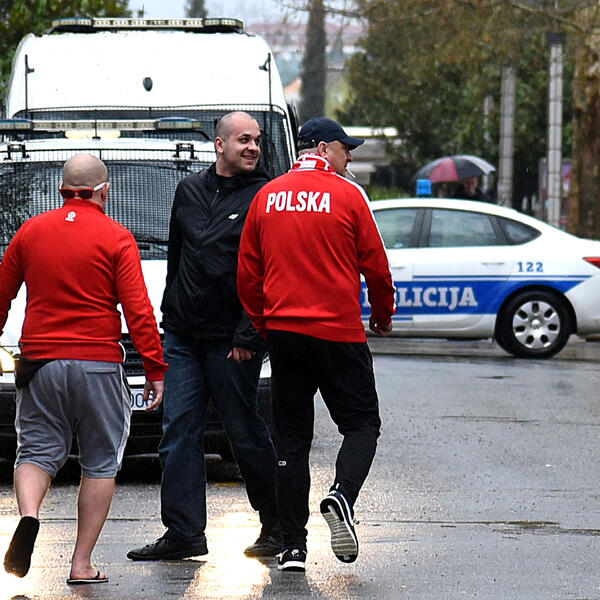 Na Trgu nezavisnosti nalazila se grupica poljskih navijača, okružena pratnjom jakih policijskih snaga.