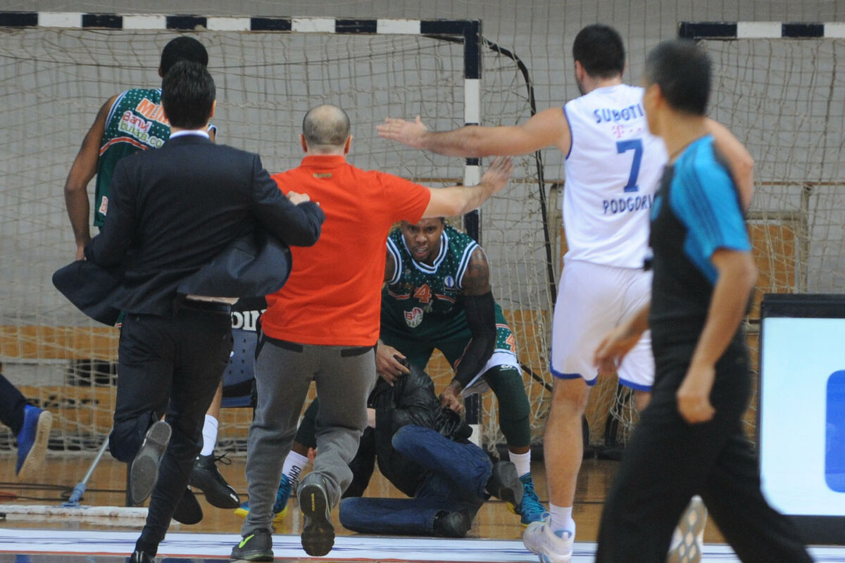 U "Morači" su, naime, opet viđene scene koje ne želi niko da gleda na sportskim terenima - dva minuta u 17 sekundi prije kraja došlo je do incidenta kada je jedan navijač nasrnuo na košarkaše turskog tima Kita Simonsa i Samija Mehiju.