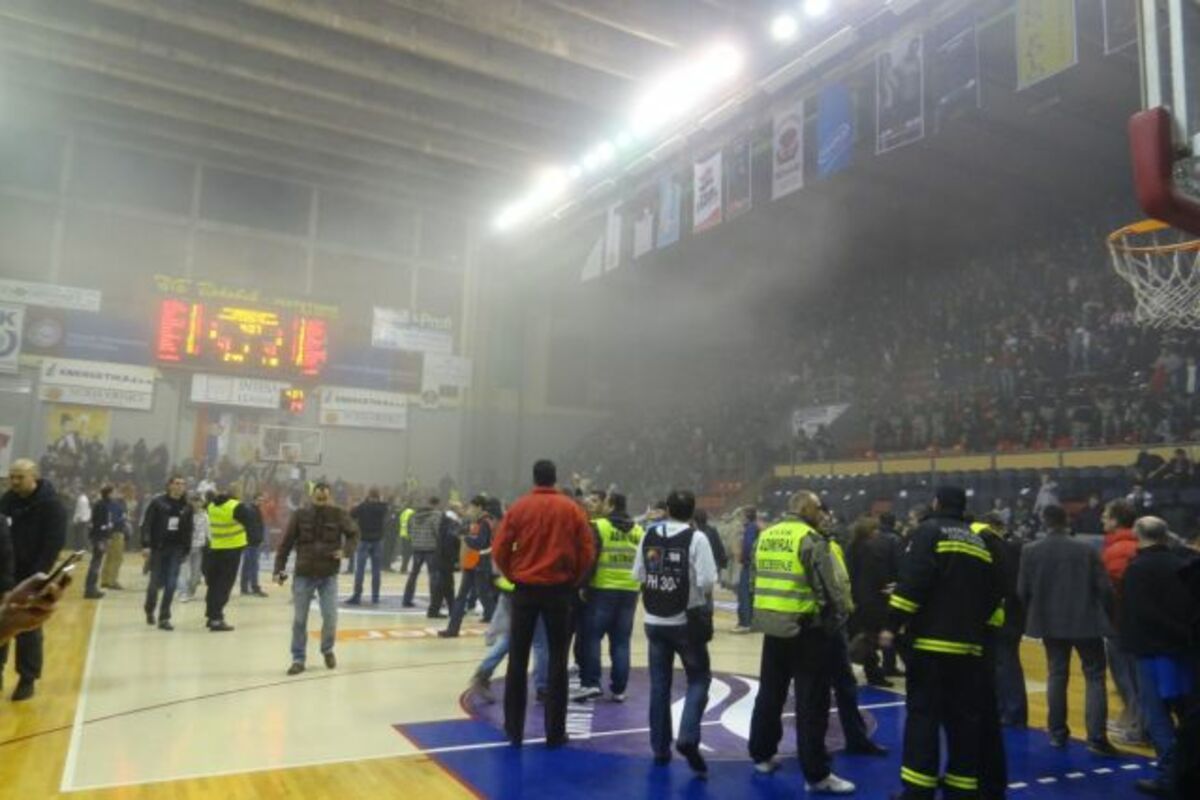 Finalna utakmica ovogodišnjeg Kupa Radivoja Koraća između Crvene zvezde i Partizana prekinuta je u trećoj četvrtini pošto su izbili neredi na tribinama i terenu. Meč je nastavljen sjutradan pred praznim tribinama.