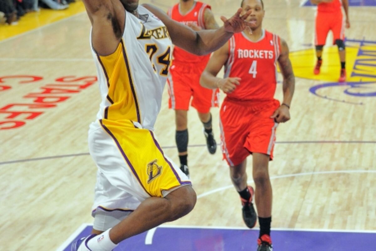 Predvođeni sjajnim Kobijem Brajantom, koji je zabilježio 18. tripl-dabl u karijeri, košarkaši Los Anđeles Lejkersa pobijedili su pred svojim navijačima Hjuston sa 119:108.