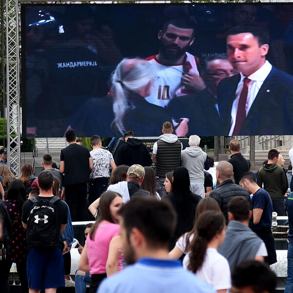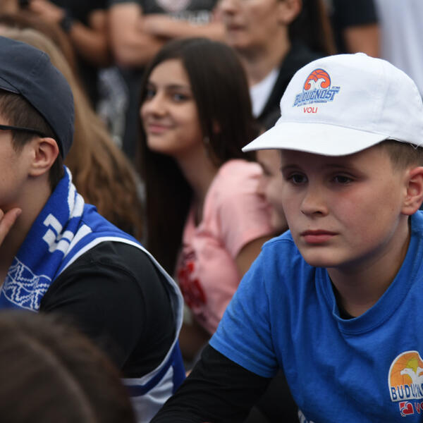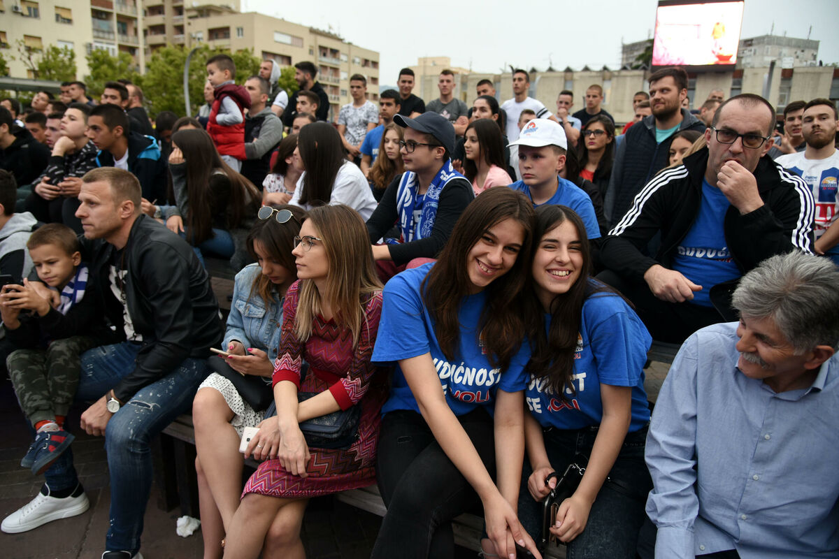 Navijači Budućnost Volija gledali su večeras na Trgu nezavisnosti u Podgorici prenos odlučujuće, pete utakmice finala plej-ofa košarkaške ABA lige između Budućnost Volija i Crvene Zvezde.