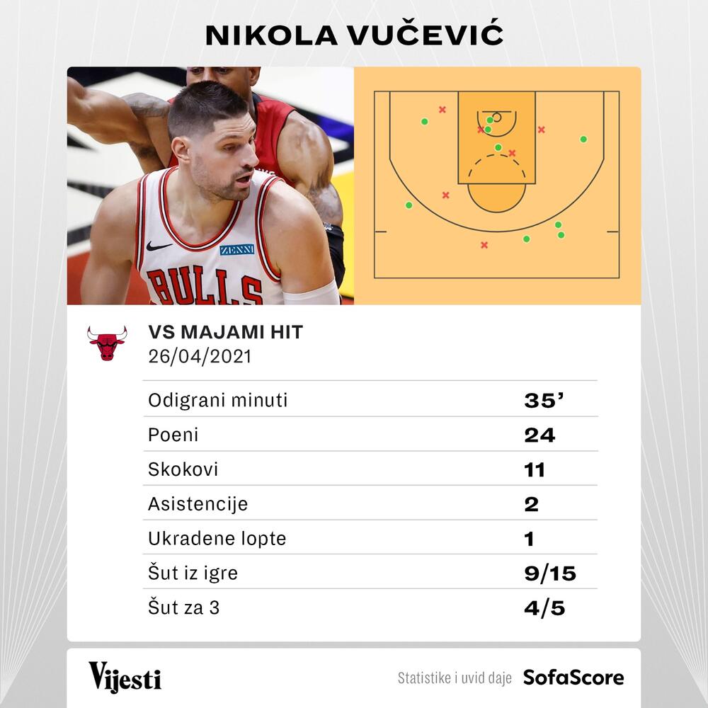Nikola Vučević je zablistao na Floridi i vodio Čikago do pobjede nad Majamijem 110:102.