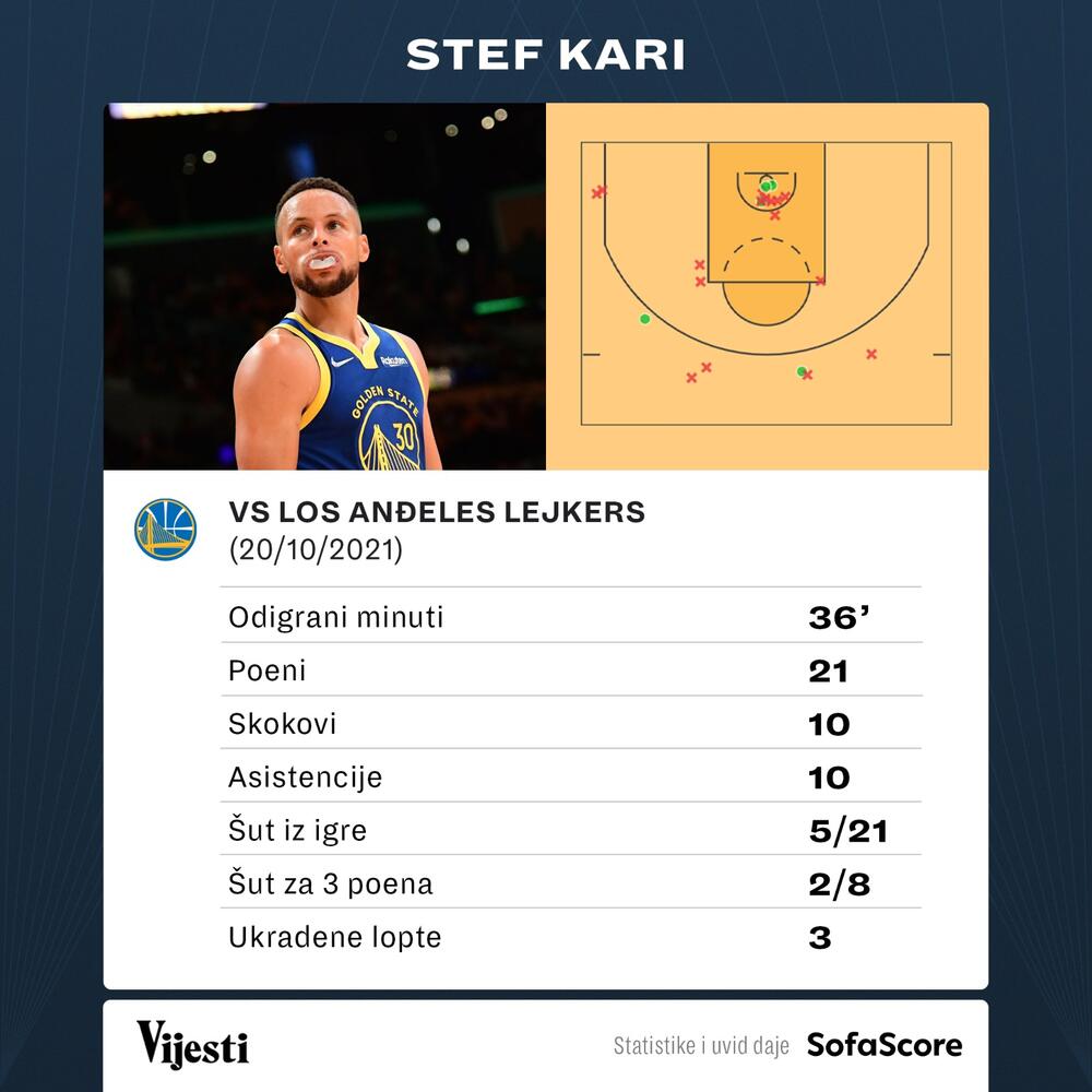 Najbolji je ipak bio Stef Kari sa 21 poenom, po 10 skokova i asistencija, za prvi tripl-dabl u sezoni, a tek osmi u karijeri. Džordan Pul ubacio je 20 poena, Bjelica 15.