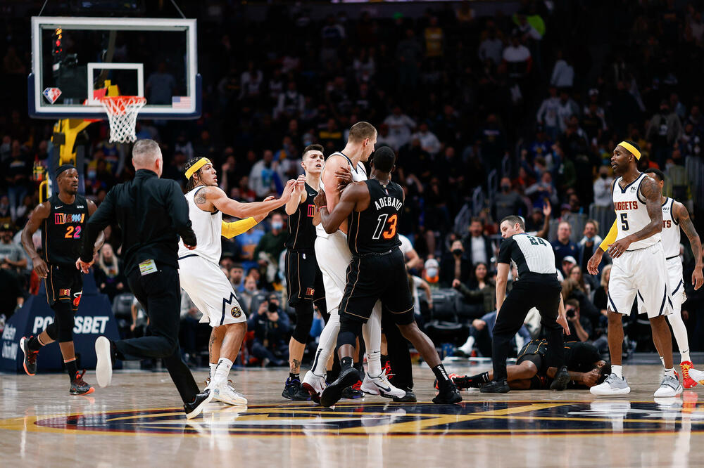 Košarkaši Denvera pobijedili su na svom terenu ekipu Majamija sa 113:96, a meč je obilježio Nikola Jokić - i učinkom i incidentom.