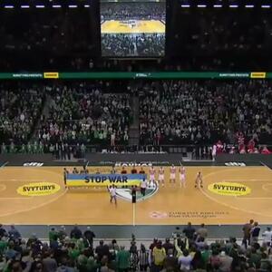 Košarkaši beogradskog kluba nisu držali zastavu Ukrajine sa natpisom "Stop war" (Zaustavite rat) uoči utakmice.