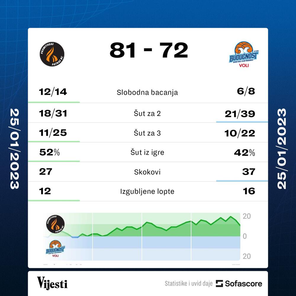 Prošlo je dosta vremena otkada su došla dva pojačanja, ali Erik Grin i Džej Džej O’Brajen i dalje djeluju kao strana tijela u ekipi, ali nisu jedini. Zbog toga, nijedan poraz više ne čudi, ali večerašnji mnogo boli - „plavi” su bili potpuno nemoćni na gostovanju Promiteasu, izgubili 81:72 i pali na 6. mjesto na tabeli grupe A.