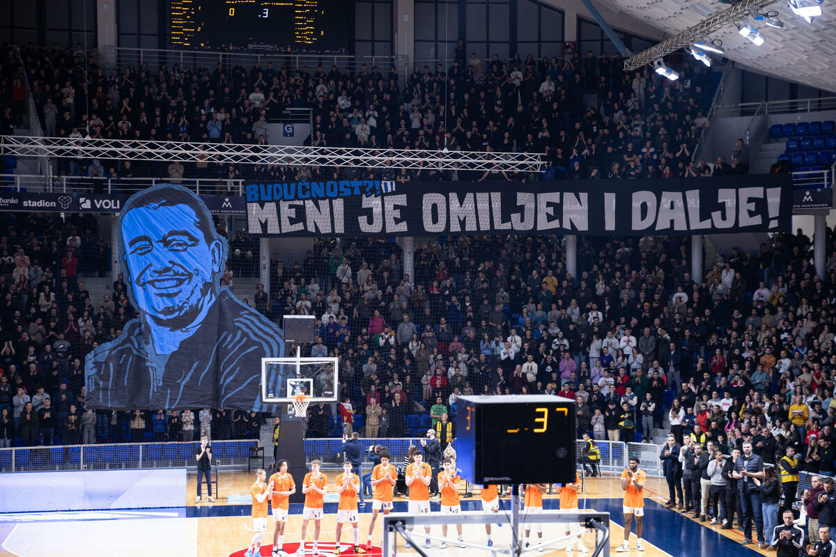 Za to vrijeme na tribini gdje su navijači Budućnosti "Varvari" okačen je ogroman transparent sa likom Milojevića, uz poruku - "Budućnost?! Meni je omiljen i dalje".