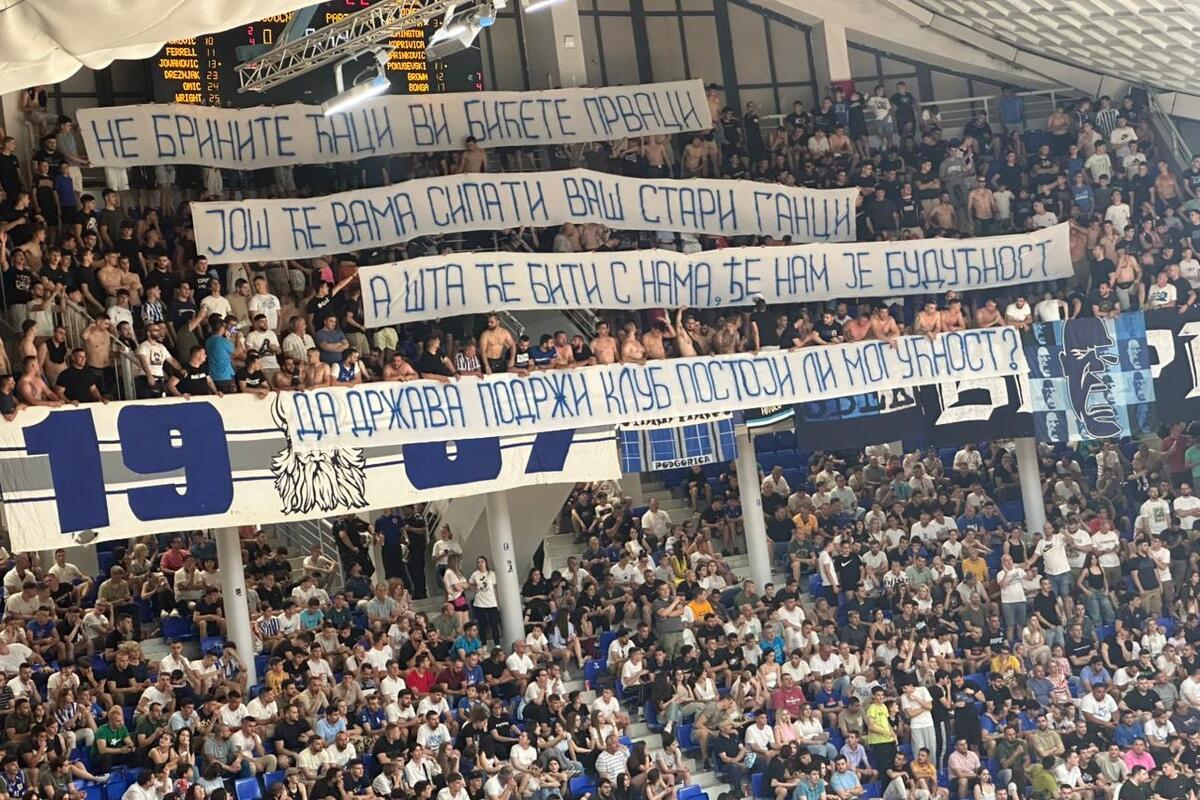 Interesantan transparent objavili su navijači Budućnosti, "varvari", koji su prozvali državu zbog maćehinskog odnosa prema jednom od najboljih klupskih sportskih proizvoda u Crnoj Gori.