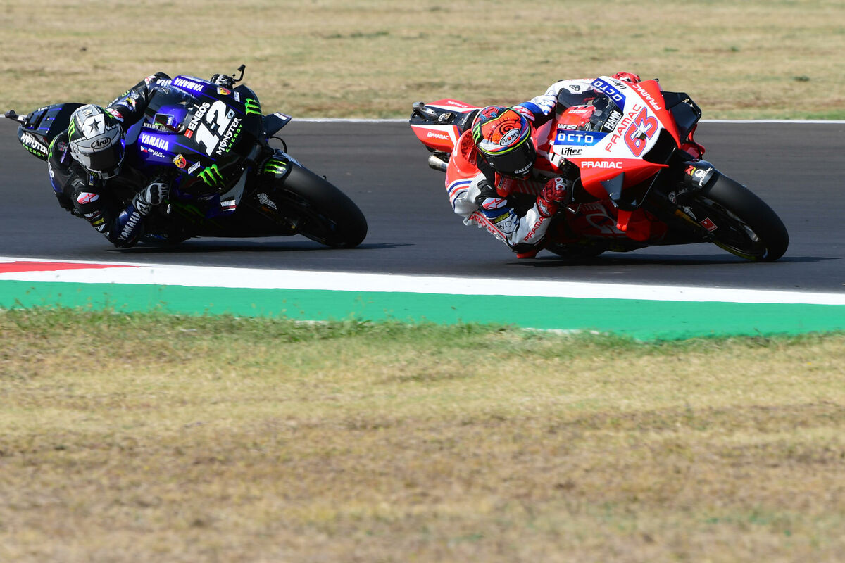 Španac je bio veliki miljenik sreće, pošto ga je u šestom krugu pretekao vozač Pramak Dukatija Franćesko Banjaja, koji je potom povećavao prednost.