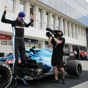 Vozač Alpina Esteban Okon je bio presrećan nakon pobjede u Mađarskoj, njegove prve u karijeri u Formuli 1.