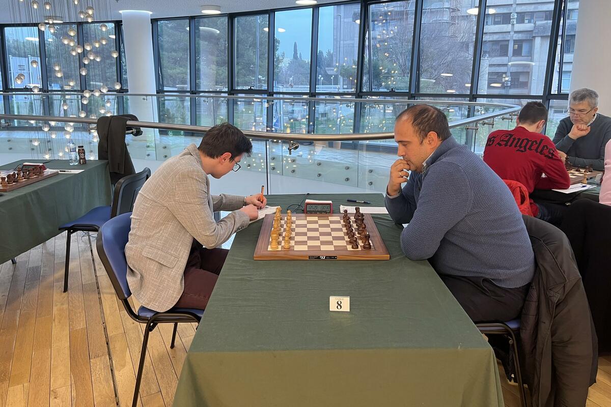 Uzbudljiva je bila partija reprezentativca Aleksandra Tomića i predsjednika Šahovskog saveza Jovana Milovića.