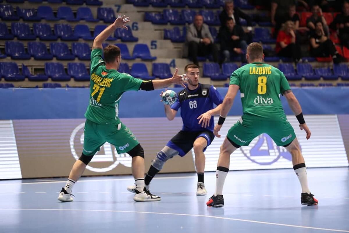 Branko Vujović je svojim 3. pogotkom u posljednjem minutu 1. poluvremena prvi put donio plus četiri (13:9), ali je rival u nastavku prišao na 13:12, a na 14:13 je Valjon Dedaj iz sedmerca pogodio prečku.