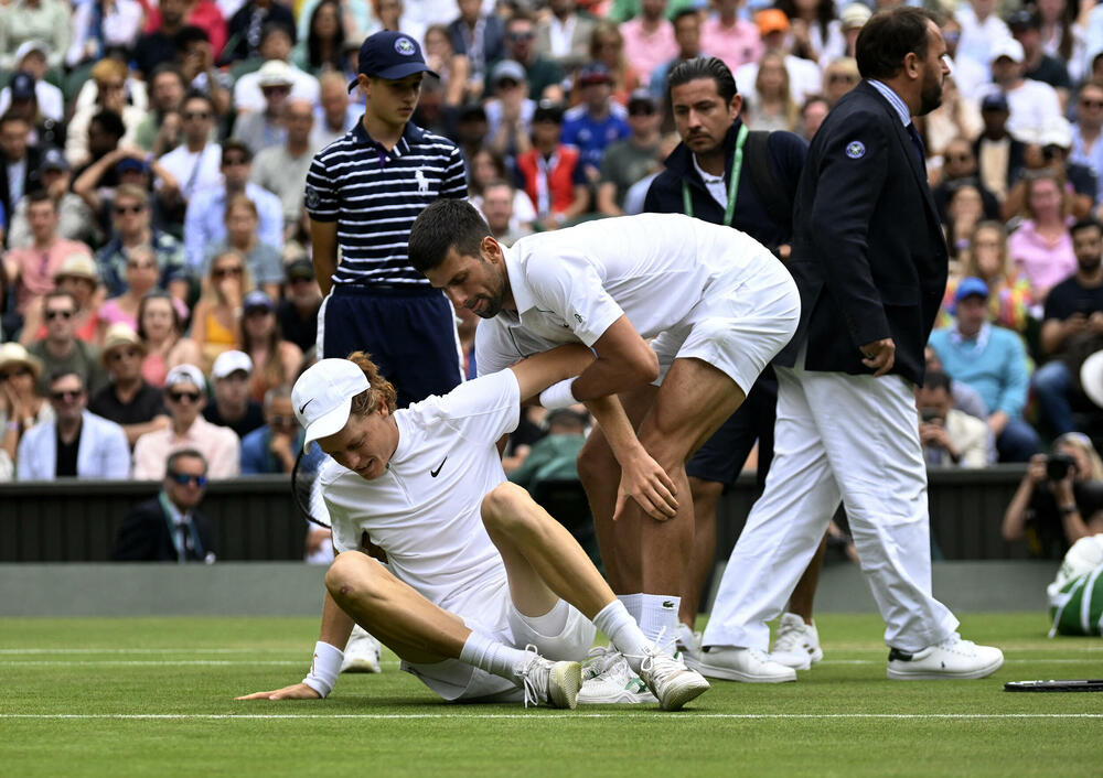 Siner je propustio dvije prilike da vrati jedan brejk na 5:2, prilikom prve lakše iskrenuo i skočni zglob, a Đoković mu je odmah pritrčao u pomoć.