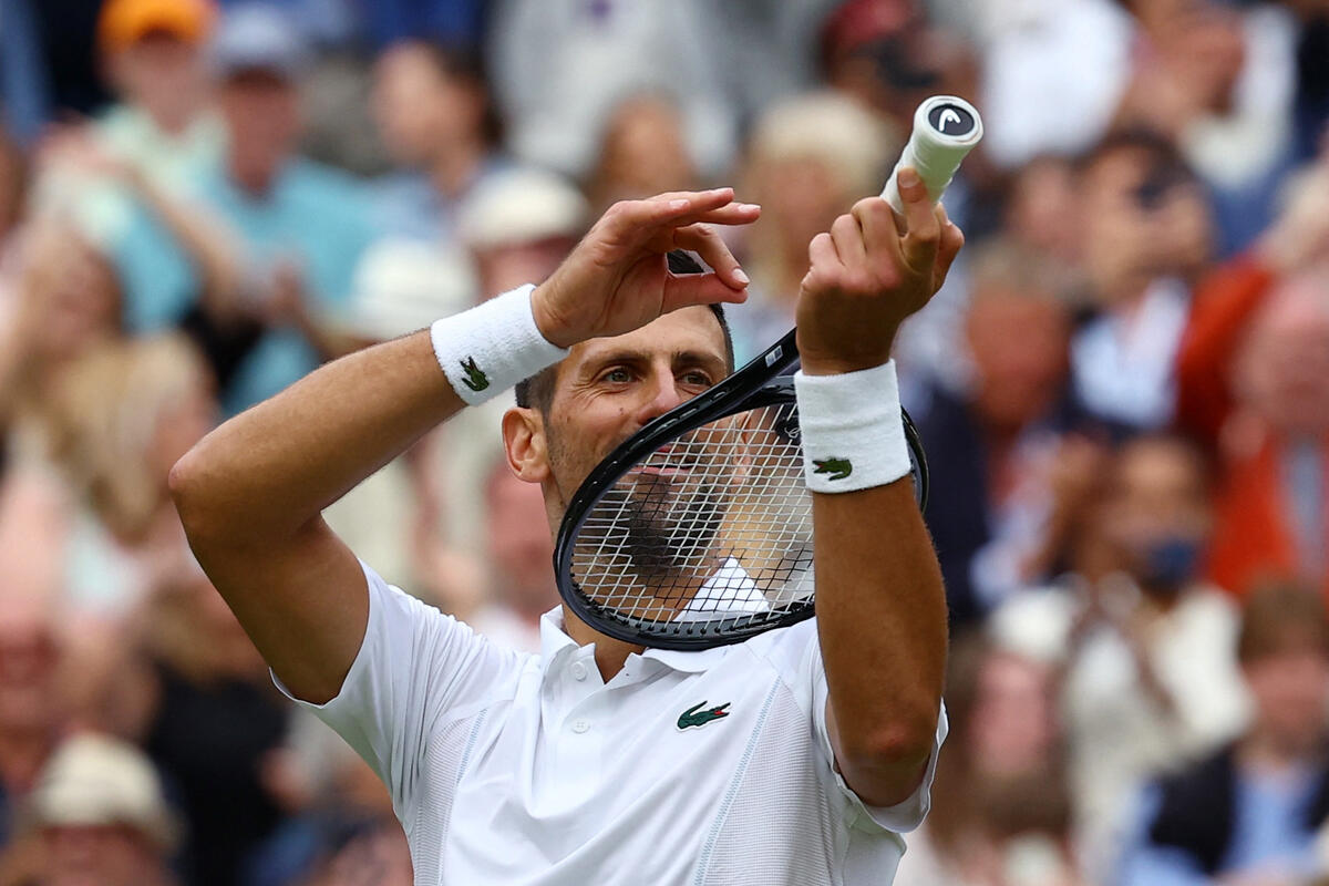 Novak Đoković će imati priliku za revanš Karlosu Alkarasu u finalu Vimbldona! Srpski teniser je u tri seta bio bolji od Italijana Lorenca Muzetija - 6:4, 7:6, 6:4.