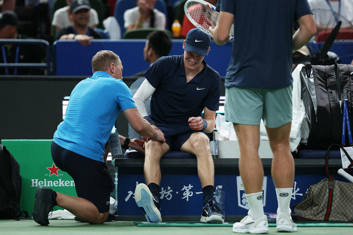 Italijanski teniser Janik Siner, drugi igrač svijeta i branilac titule, predao je večeras meč trećeg kola Mastersa u Šangaju Holanđaninu, Talonu Griksporu zbog povrede desne noge.