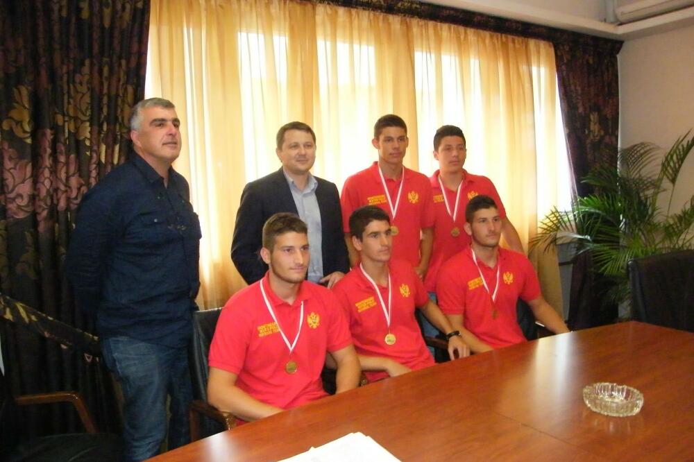 Predsjednik Opštine Budva Lazar Rađenović uručio je juče novčane nagrade od po 500 eura petorici mladih budvanskih vaterpolista, članova juniorske reprezentacije Crne Gore, koji su nedavno osvojili zlatnu medalju na Evropskom prvenstvu.