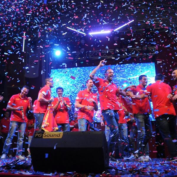Nakon predstavljanja kompletne ekipe i stručnog štaba svi akteri su zajedno otpjevali državnu himnu koja je dovela atmosferu do usijanja i vratila sjećanja pet godina unazad kada je Podgorica nakon Malage dočekala tada evropske šampione i prvi put se kako priliči "povezala" sa vaterpolistima.