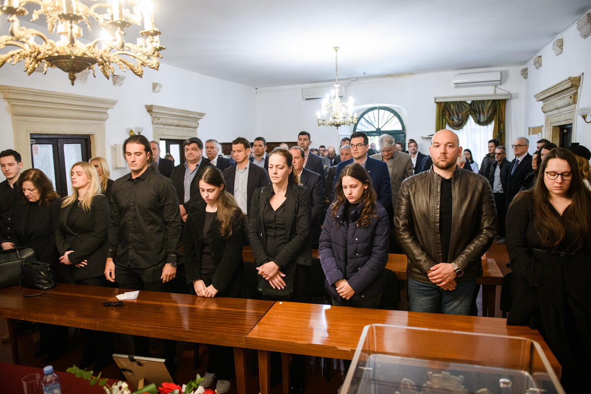 Pored porodice, od Dejana su se oprostili članovi Saveza i Opštine Kotor, mnogobrojni sportisti, sportski radnici i prijatelji, a obratio se predsjednik VPSCG Đuro Marić.