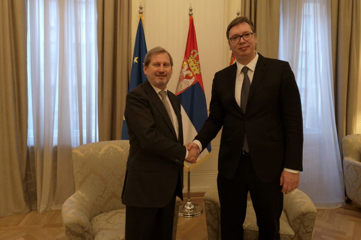 "Vučić je zahvalio Hanu na razumijevanju situacije i na želji da problem riješi, kao i na njegovoj pomoći Srbiji na evropskom putu, naglasivši da je za dalji napredak regiona ključno očuvanje mira i stabilnosti, kao i dalje evropske integracije. On je istakao da je Srbija spremna da nastavi dijalog s Prištinom, nakon što Priština povuče neodgovorne poteze", navedeno je u saopštenju.