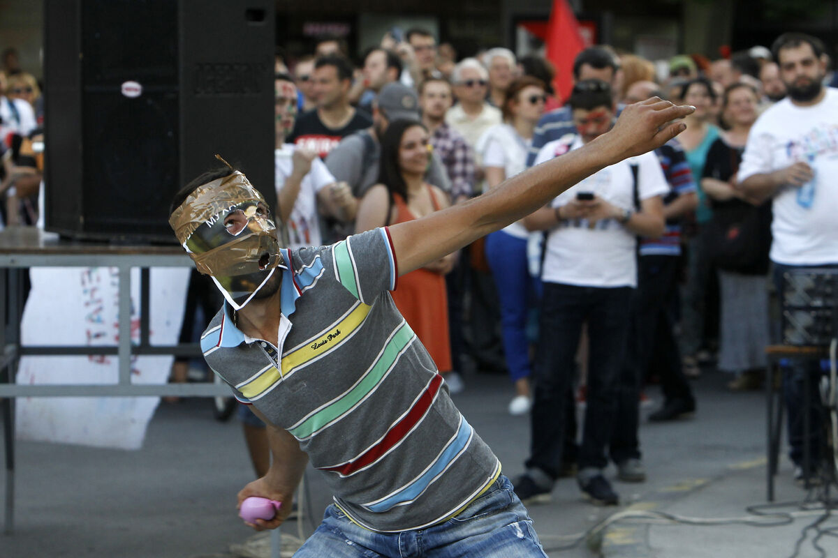 Građani su večeras farbom obojili fasadu Ministartva pravde i narodnu kancelariju predsjednika Ivanova.