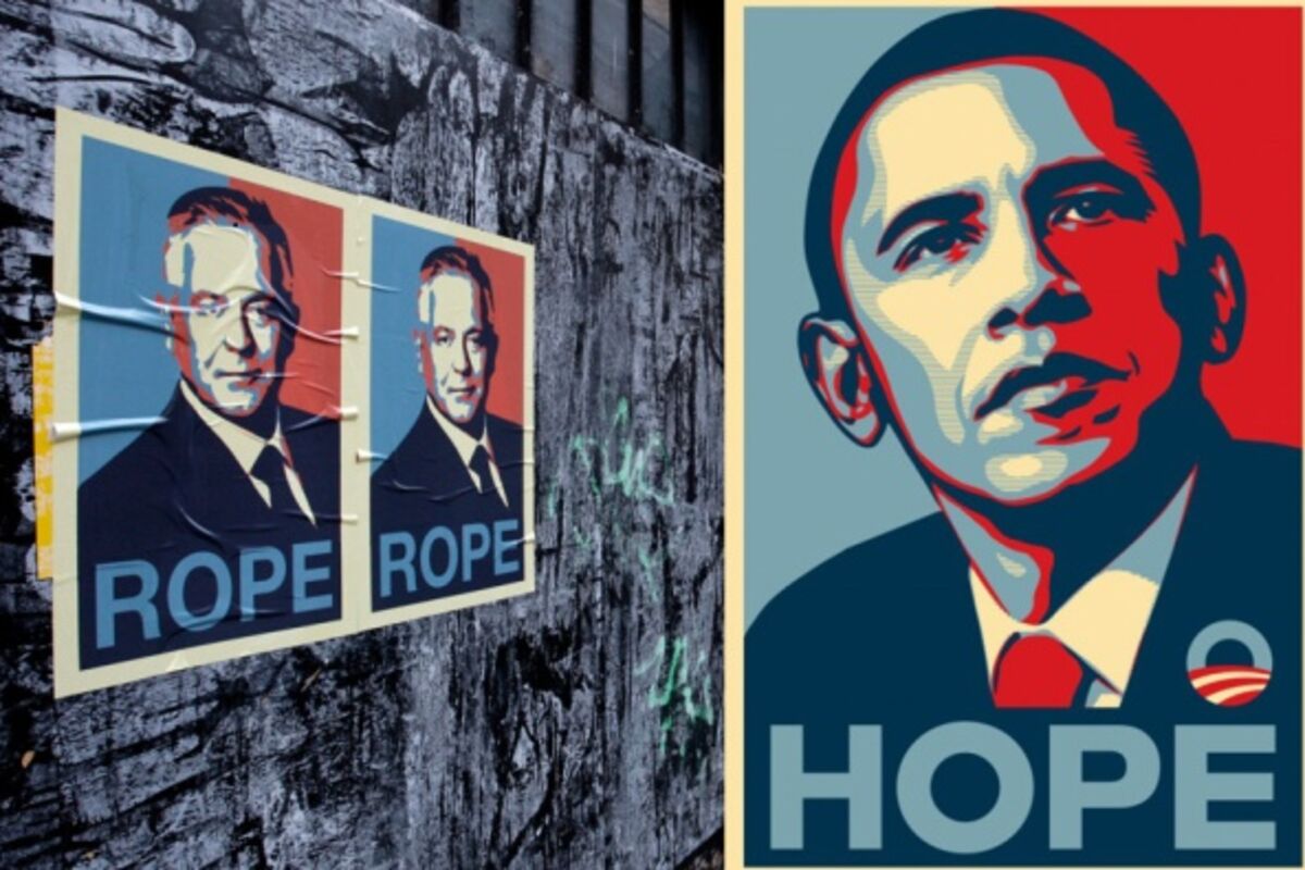 Prema informacijama loklanih elektronskih medija, plakati su inspirisani poznatim predizbornim plakatima Baraka Obame, koji je bio prikazan uz slogan "Houp" (Hope), odnosno nada. Uz Sanaderov lik ispisana je poruka Roup (Rope), odnosno kanap.