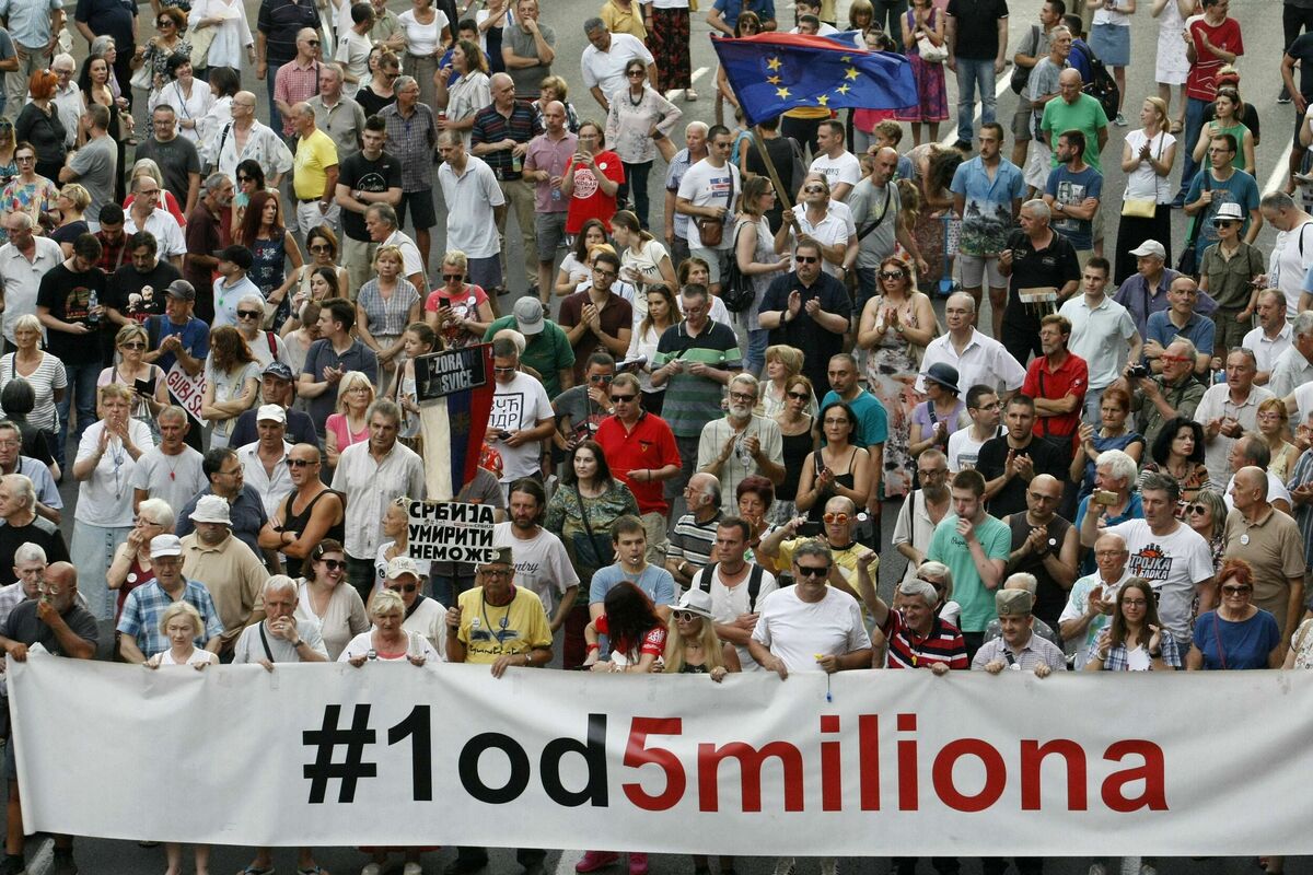 Učesnici protesta "Jedan od pet miliona" obilježili su večeras u Beogradu sedam godina vlasti Aleksandra Vučića i "propadanja Srbije", uz poruku da će morati sam na izbore ako ne omogući da se održe u fer uslovima.