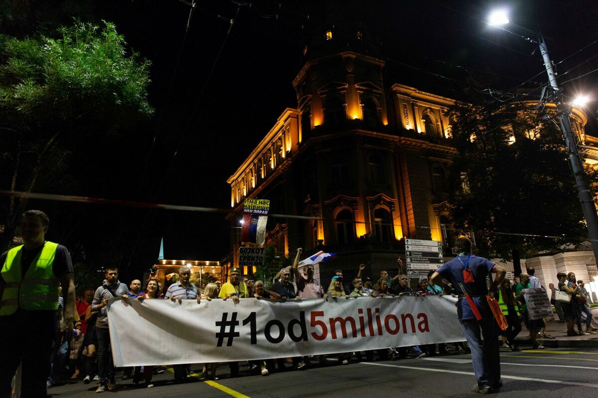 Jovanović je okupljenima ispred Filozofskog akulteta, koji su 41. put došli na protest "Jedan od pet miliona", rekao da je Srbija prva po korupciji u Evropi, da privatni izvršitelji otimaju ljudima stanove, najčešće zbog infostana, da vojnim penzionerima u "Bristolu" isključuju vodu i struju.