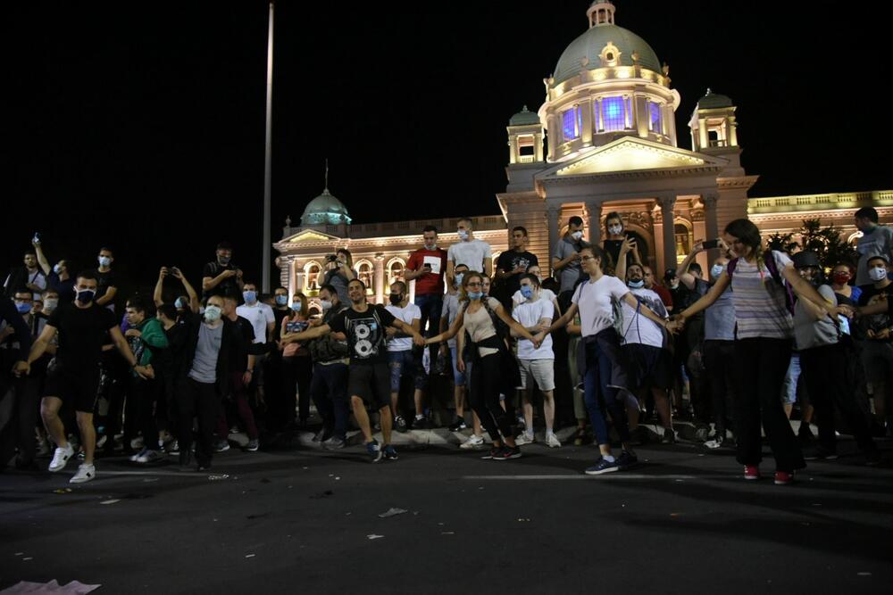 23:28 Većina demonstranata je otišla, ali jedan dio i dalje stoji ispred Skupštine Srbije u Beogradu.