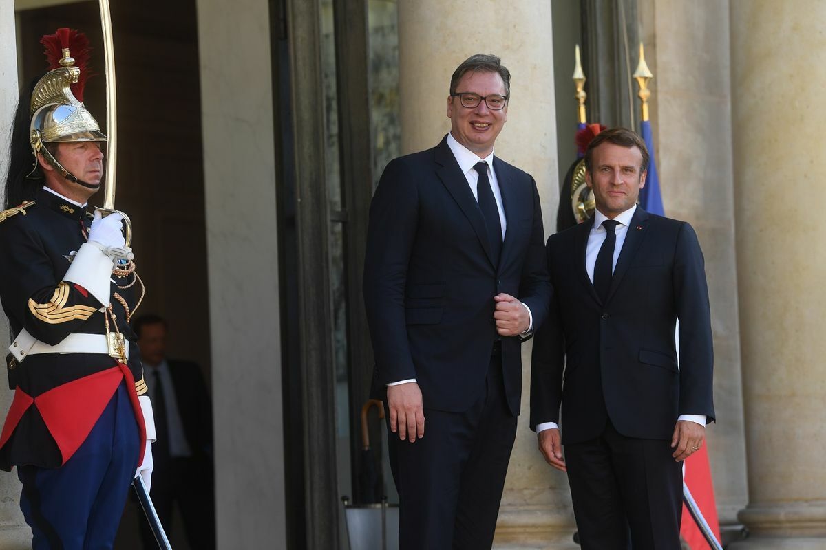 Samo dan nakon nasilnih protesta u Beogradu, pretjerane upotrebe policijske sile i teških riječi koje je iz zgrade predsjedništva uputio građanima, opoziciji i "stranim faktorima upletenim u demonstracije", javnost Srbije je uz osjetno ushićenje predsjednika bila obaviještena o tome da je sat i po vremena razgovarao u četiri oka sa Makronom i da su potom bili na večeri, ali i da mu je dozvoljen ulaz u odaje francuskog predsjednika.