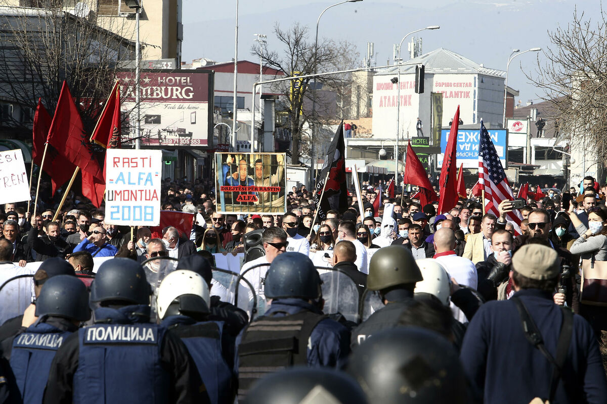 Dio demostranata je nosio albanske zastave i izvikivao "Velika Albanija!", a grupa sa fantomkama na glavama je bacala kamenje na policajce, koji su u suzbijanju protesta koristili i "šok bombe".