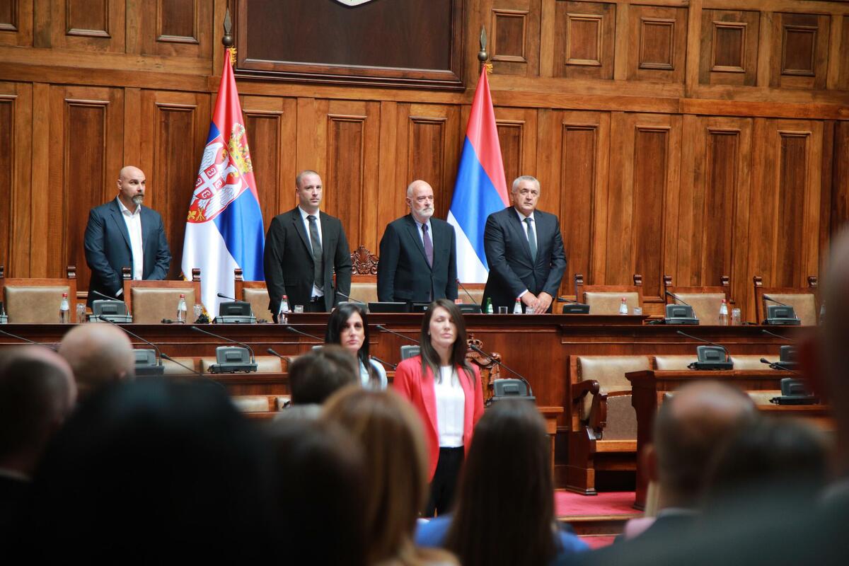 Sjednicom, koja je počela oko deset sati, predsjedavao je najstariji poslanik Vladeta Janković za liste "Ujedinjeni za pobjedu Srbije".