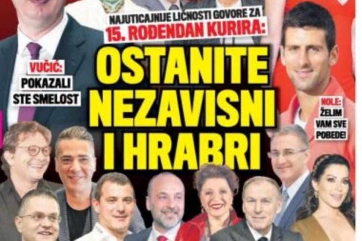 "Punih 15 godina Kurir je najuticajniji dnevni list Srbiji i medij uz koji najveći broj građana započinje dan. Redakcija Kurira zahvaljuje se svim čitaocima na ukazanom poverenju i podseća da je Kurir uvek na strani naroda", stoji u saopštenju Kurira povodom jubileja.
