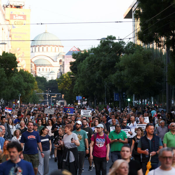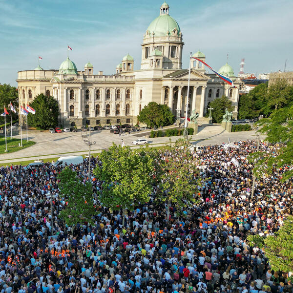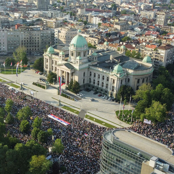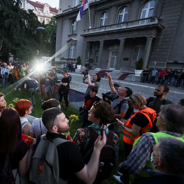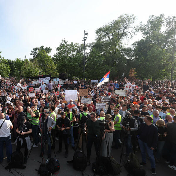 Kako je javio reporter agencije Beta, na Andrićevom vencu u Beogradu, između predsjedništva i Skupštine Srbije i dalje je okupljeno nekoliko stotina građana, dok je saobraćaj preko Slavije uspostavljen.