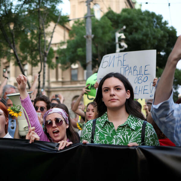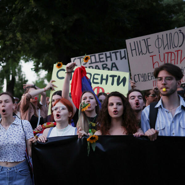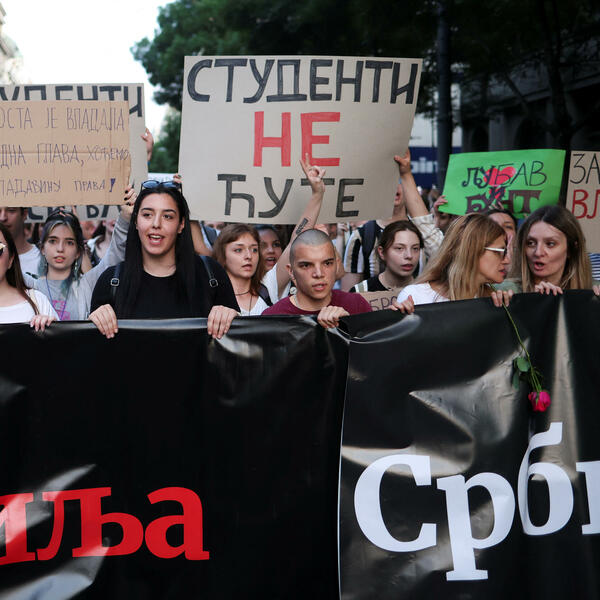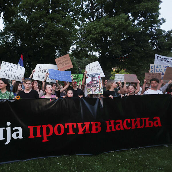 Studenti više beogradskih fakulteta, noseći transparente kojima pozivaju na suprotstavljanje svim vidovima nasilja, pridružili su se okupljenima na petom protestu "Srbija protiv nasilja".