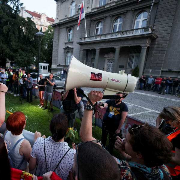 Beta je ranije javila da okupljeni na protestu "Srbija protiv nasilja" u koloni prolaze Ulicom Kralja Milana u Beogradu pored zgrade predsjedništva skandirajući predsjedniku Srbije "Vučiću odlazi" i "Ostavke, ostavke".