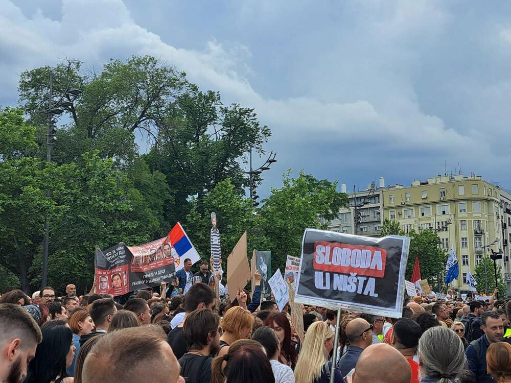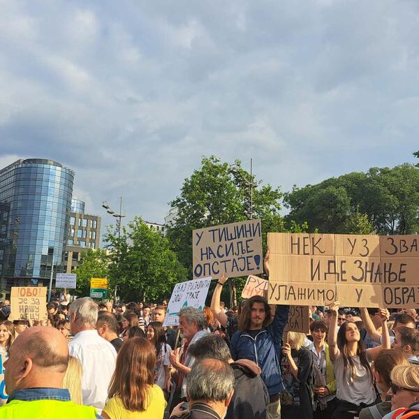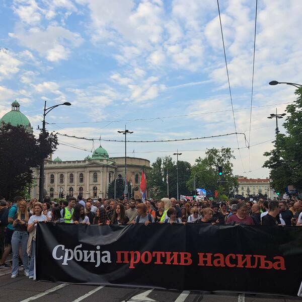 Protesti su počeli poslije dva napada u beogradskoj Osnovnoj školi "Vladislav Ribnikar" i u selima u okolini Mladenovca i Smedereva, u kojima je ubijeno 18, a povrijeđeno više od 20 osoba.