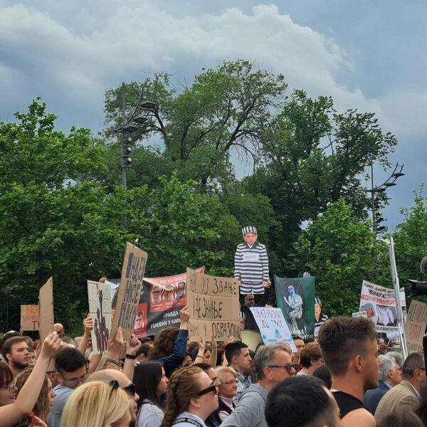 Dio proevropske opozicije koja je organizovala protest traži smjenu Savjeta Regulatornog tijela za elektronske medije (REM) i rukovodstva Radio-televizije Srbije (RTS), zbog tolerisanja nasilja u medijima i drugih kršenja zakona.
