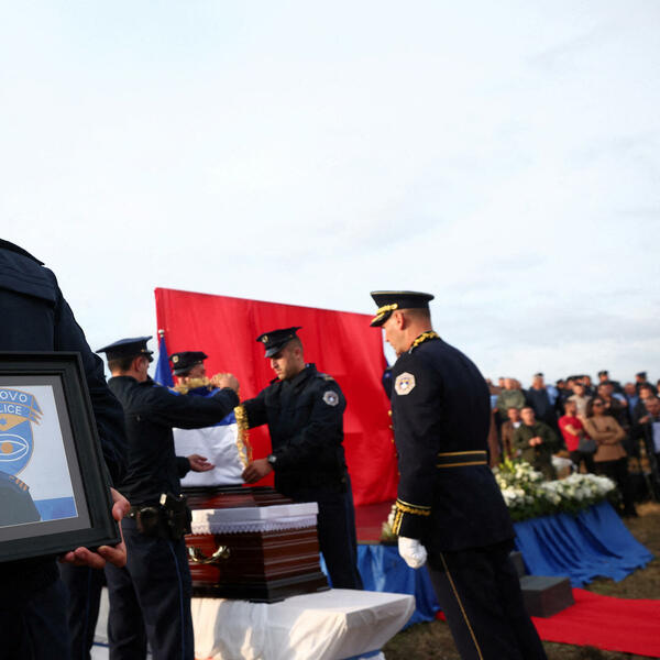 "U znak žalosti i poštovanja, na dan sahrane narednika kosovske policije Afrima Bunjakua, koji je juče ubijen u strašnom i kukavičkom terorističkom napadu, spuštena je zastava Evropske unije na pola koplja. Naša srca su uz njegovu porodicu, njegove najmilije i narod Kosova", navodi se u saopštenju kancelarije EU u Prištini.
