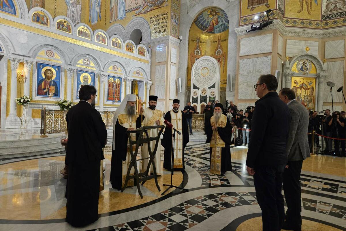 U beogradskom hramu Svetog Save jutros je održan moleban koji je upriličio patrijarh Srpske pravoslavne crkve (SPC) Porfirije, uoči odlaska predsjednika Srbije Aleksandra Vučića na sjednicu Generalne skupštine Ujedinjenih nacija na kojoj će se glasati o rezoluciji u Srebrenici.