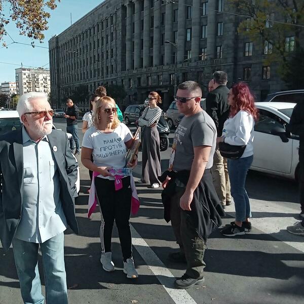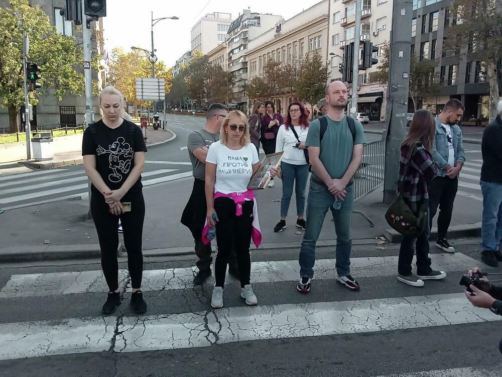 Ona je novinarima rekla da se na ovaj vid protesta odlučila "tražeći pravdu i odgovor ko je ubio njenog sina i još 15 ljudi u novosadskoj tragediji prije godinu dana", dodavši da ju je policija zadržala kod ograde koja ulicu dijeli od "ćacilenda", šatorskog naselja u kojem borave pristalice vlasti već mjesecima.