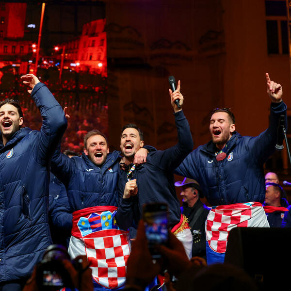 Hrvatski rukomenti reprezentativci sa kontroverznim pjevačem na dočeku u Zagrebu, Foto: Reuters